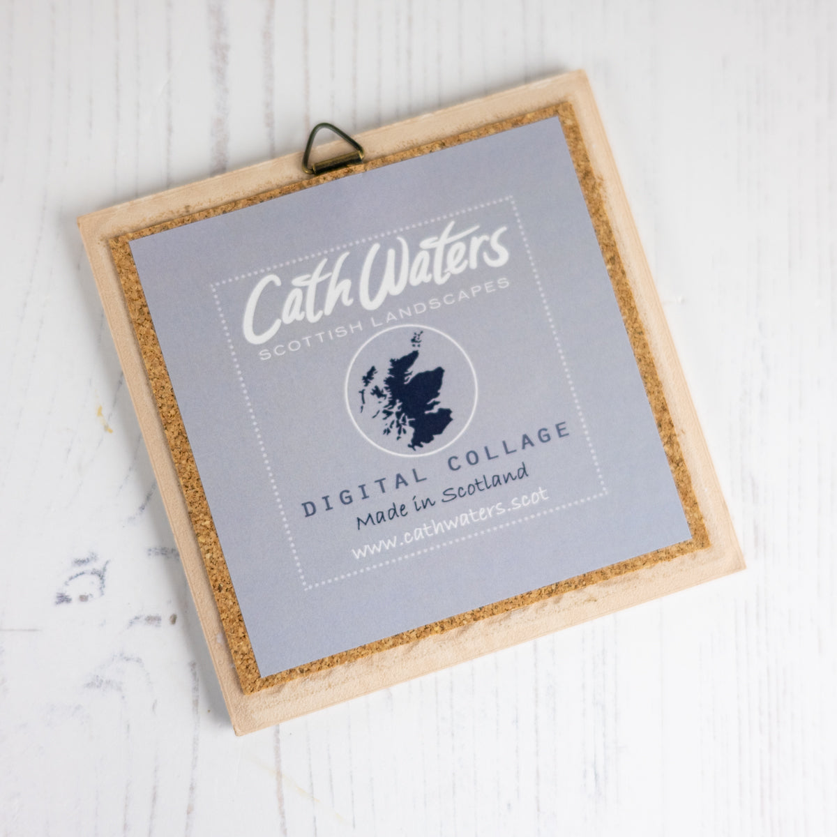 Gift boxed ceramic tile wall art. A 4.25" cork backed, glossy , ceramic tile with hanging fixture. Presented in a high quality two piece gift box. Each tile is hand printed in Cath's workshop.