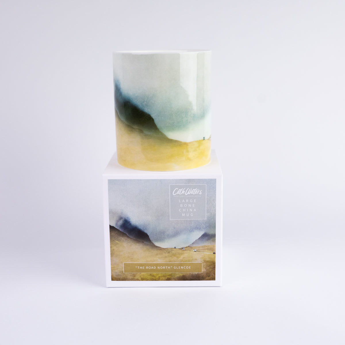 Gift boxed, Large ( 440ml /15oz) Fine Bone China mug featuring Cath's artwork. All our mugs are printed in Cath's workshop on Skye to ensure perfect quality. Our mugs are dishwasher safe but for heavily used items we recommend hand washing.