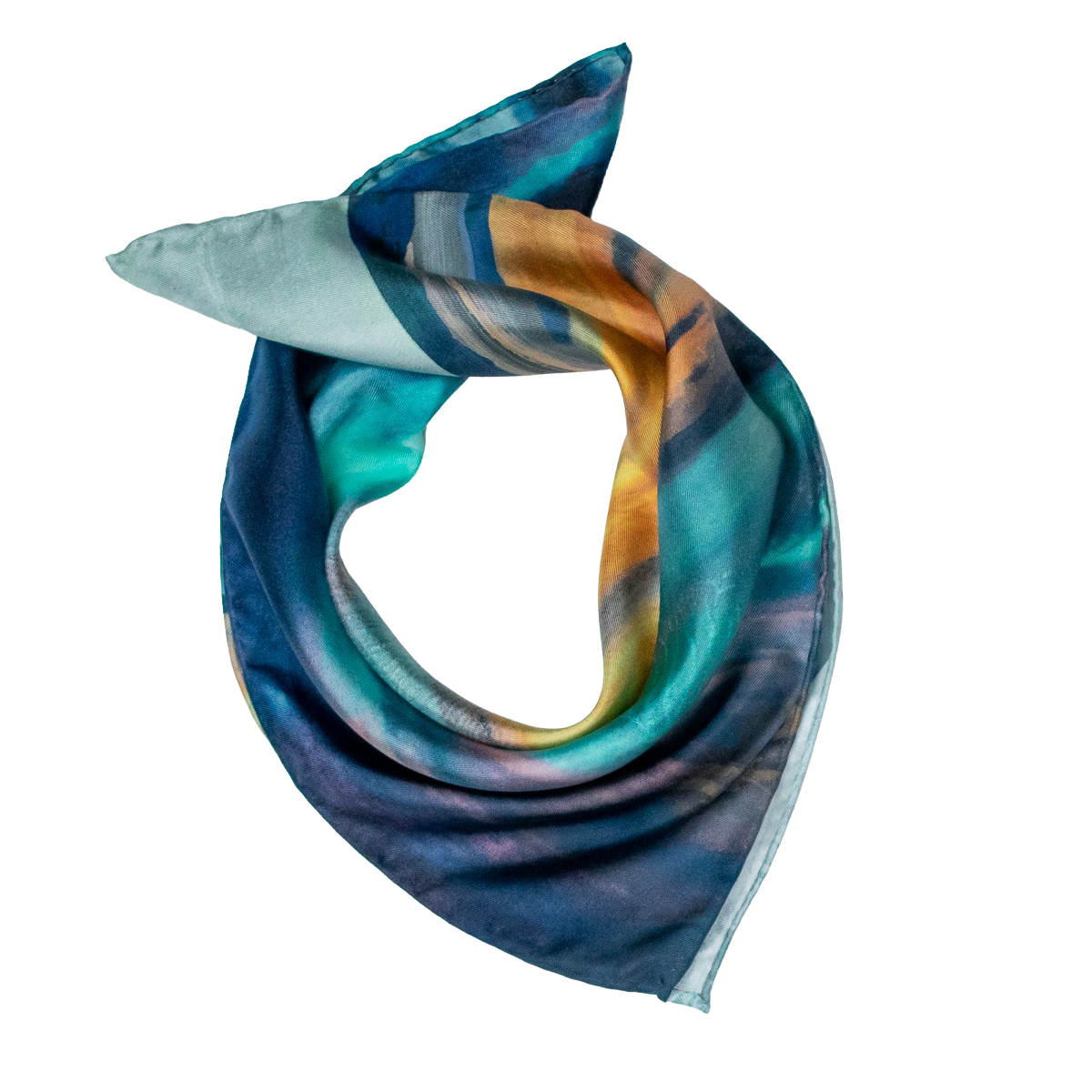 Cath's Scottish Landscape artwork beatifully printed on classic 100% silk twill scarves with rolled edges. These versatile 45cm x 45cm silk squares can be worn as a neckerchief, pocket square or simply tied around the wrist or handbag. Presented in grey gift boxes. Made and printed in the UK.