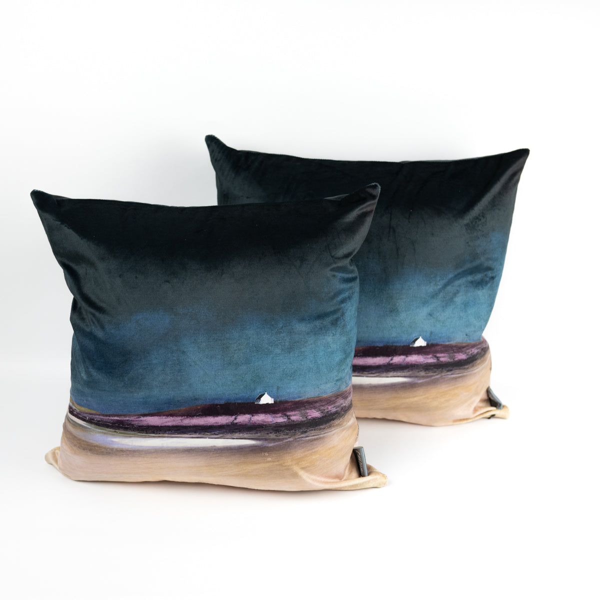Scottish landscape velvet cushions, printed and stitched by a traditional 100 year old company in Lancashire’s textile heartland. Each cushion is 45cm square with vibrant, removable covers, printed on both sides with Cath's Scottish Landscape Art. Cushions feature a hidden black zip fastening and an optional, high quality, luxuriously comfortable, feather inner pad. Designed in Scotland, made in the UK. Please note our new velvet cushions replace our previous cushion range.