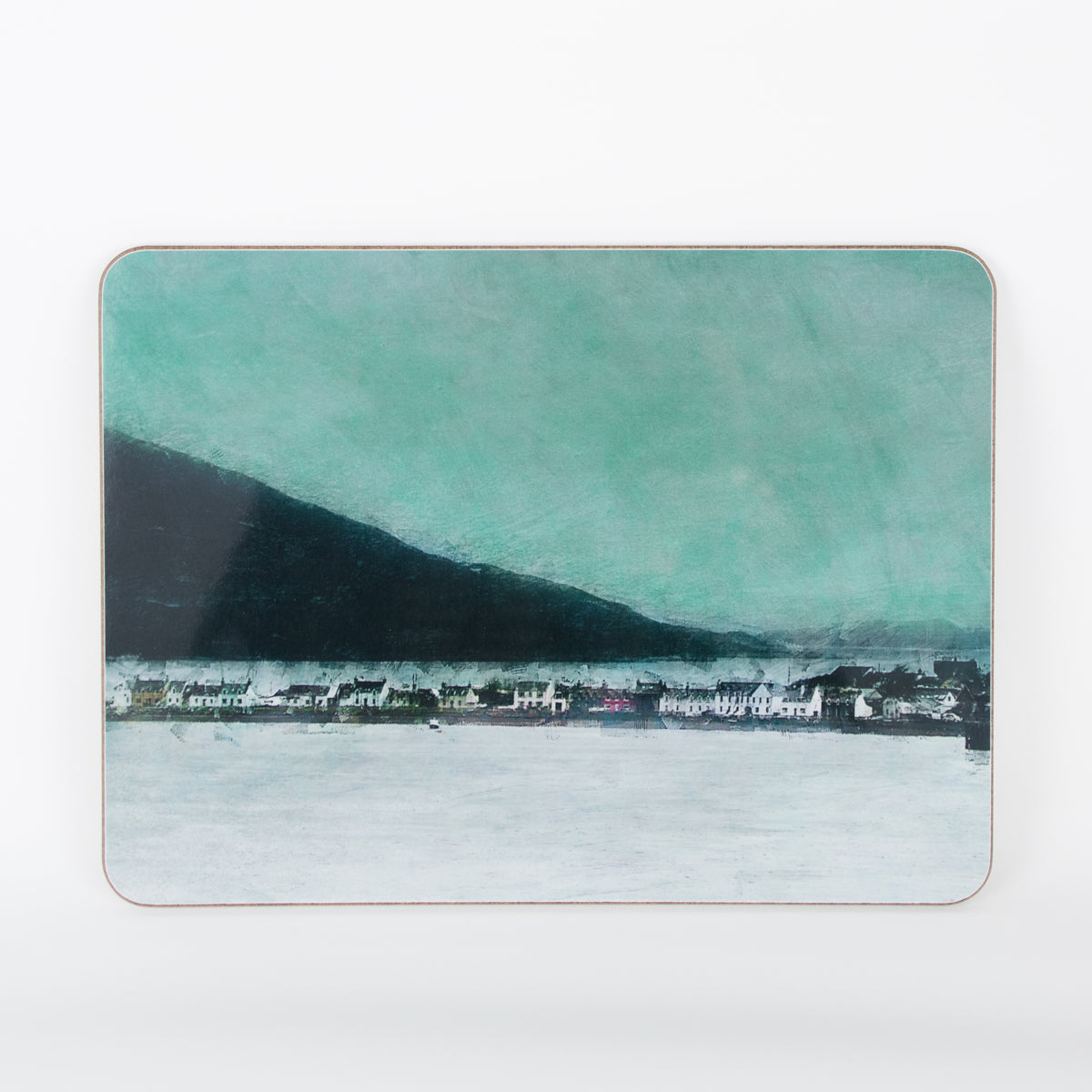 Cath's Scottish Landscapes on a range of glossy finish melamine table mats. Each mat is finished with a eucalyptus base and hard-wearing cork backing. Size: 29.2 x 21.6 x 0.5cm Easily wiped clean place mats which withstand temperatures up to 140 degrees centigrade. Made in the UK.